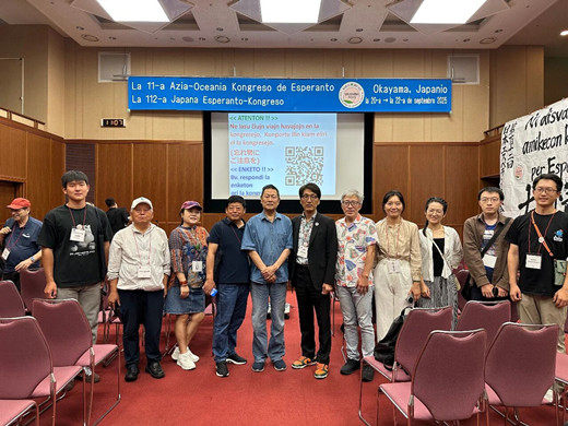 原标题:亚洲大洋洲世界语协会产生新一届领导团队 亚洲大洋洲世界语大会闭幕式 9月22日上午,第十一届亚洲大洋洲世界语大会在日本冈山闭幕。 闭幕式上,亚洲大洋洲世界语协会(KAOEM)宣布产生新一届领导团队。中华全国世界语协会秘书长、中国外文局亚太传播中心世界语传播事业部主任陈吉当选亚洲大洋洲世界语协会主席,国际青年世界语协会(TEJO)前主席、越南世界语协会(VEA)领导成员陈欢(Tran Thi Hoan)当选副主席,韩国世界语协会首尔分会会长OH Soonmo任秘书长。 亚洲大洋洲世界语协会由国际世界语协会(UEA)在亚洲及大洋洲的各国会员协会代表组成。该协会致力于协调本地区各国世界语组织的合作,并在世界语尚未活跃发展的地区推广该语言。KAOEM还负责协助国际世协在亚洲及大洋洲实施工作计划。 该协会成立于1994年在韩国举行的第79届国际世界语大会期间,最初名为亚洲世界语运动委员会(KAEM)。其主要工作包括:出版通讯简报、运营多个世界语宣传推广项目、组织亚洲世界语大会等。亚洲世界语大会每三年举办一届。2016年,根据国际世协的决定及亚洲与大洋洲地区委员会的协商,两大区域委员会正式合并为现机构。 据闭幕式公布的统计结果,共有来自19个国家/地区的388人报名本届大会,352人到场参会,其中93人来自日本以外的国家。 部分中国参会者合影